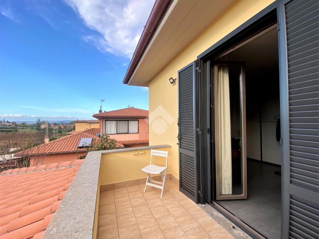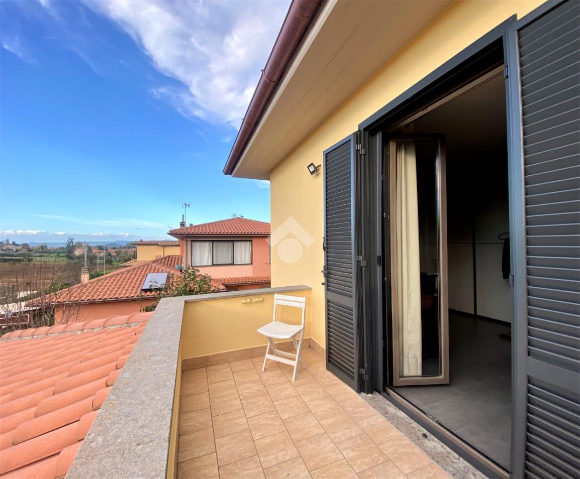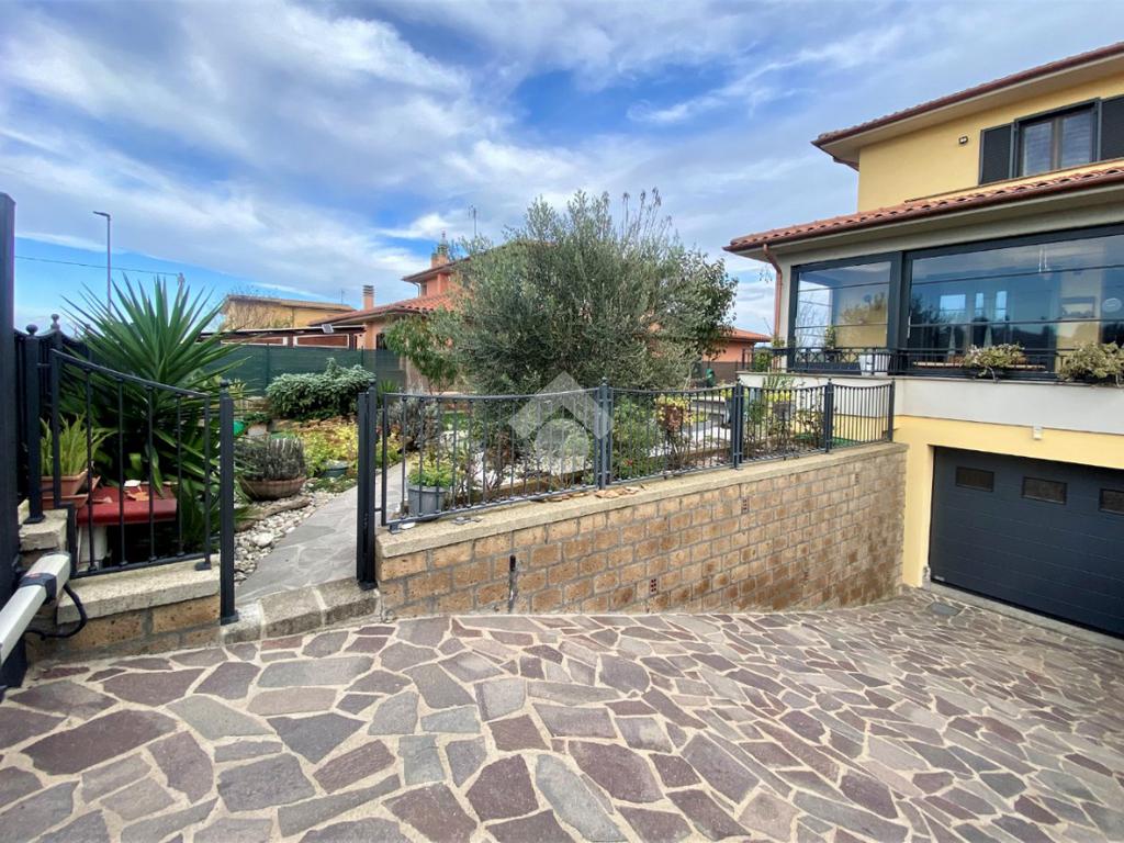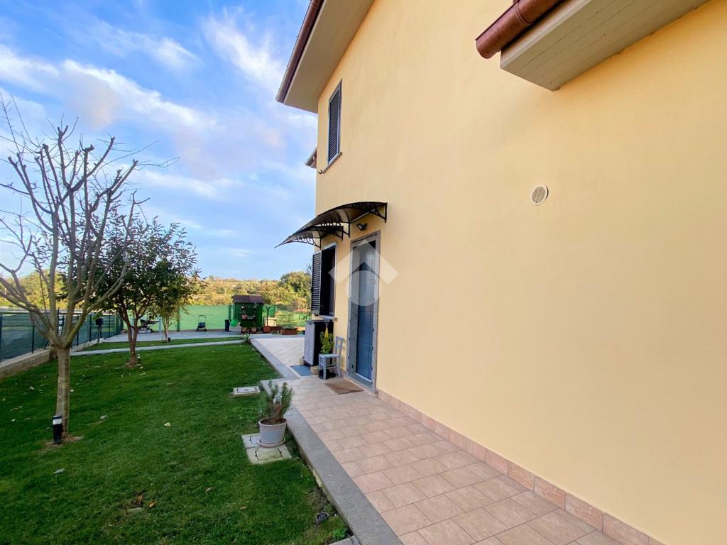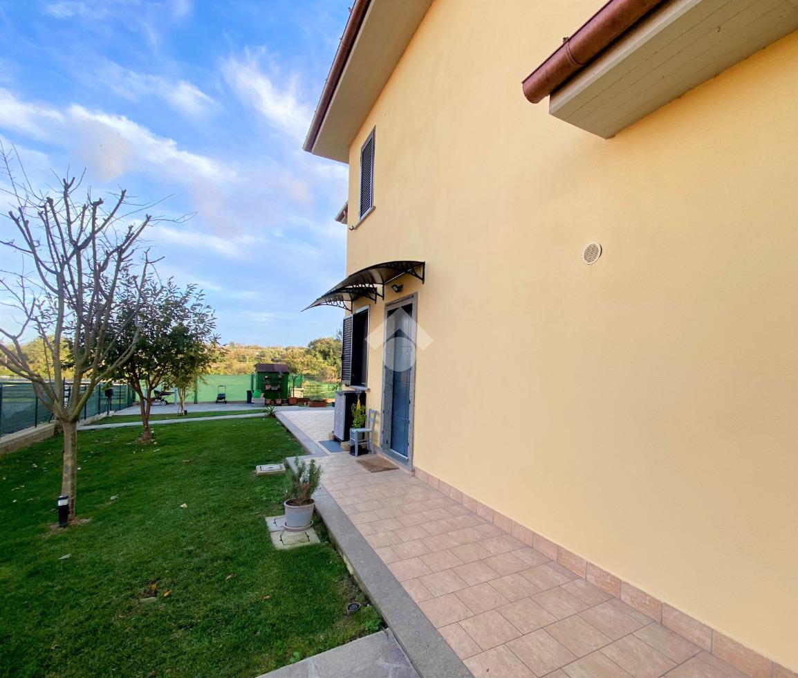 Sulle rive del Lago di Bolsena, nella zona residenziale di Capodimonte, in Strada Montecchio Scomparti , proponiamo in vendita porzione di Villa Bifamiliare di nuova costruzione con giardino.
