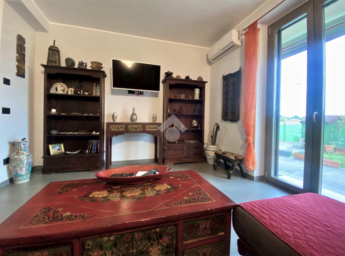 Porzione di villa ultimata nell'anno 2021 , con ottima efficienza energetica grazie al pannello solare per la produzione di acqua calda sanitaria, al riscaldamento a pavimento , alle caldaie a pellet ed a GPL integrate , ai climatizzatori ed agli infissi in Pvc con triplo taglio termico con zanzariere .