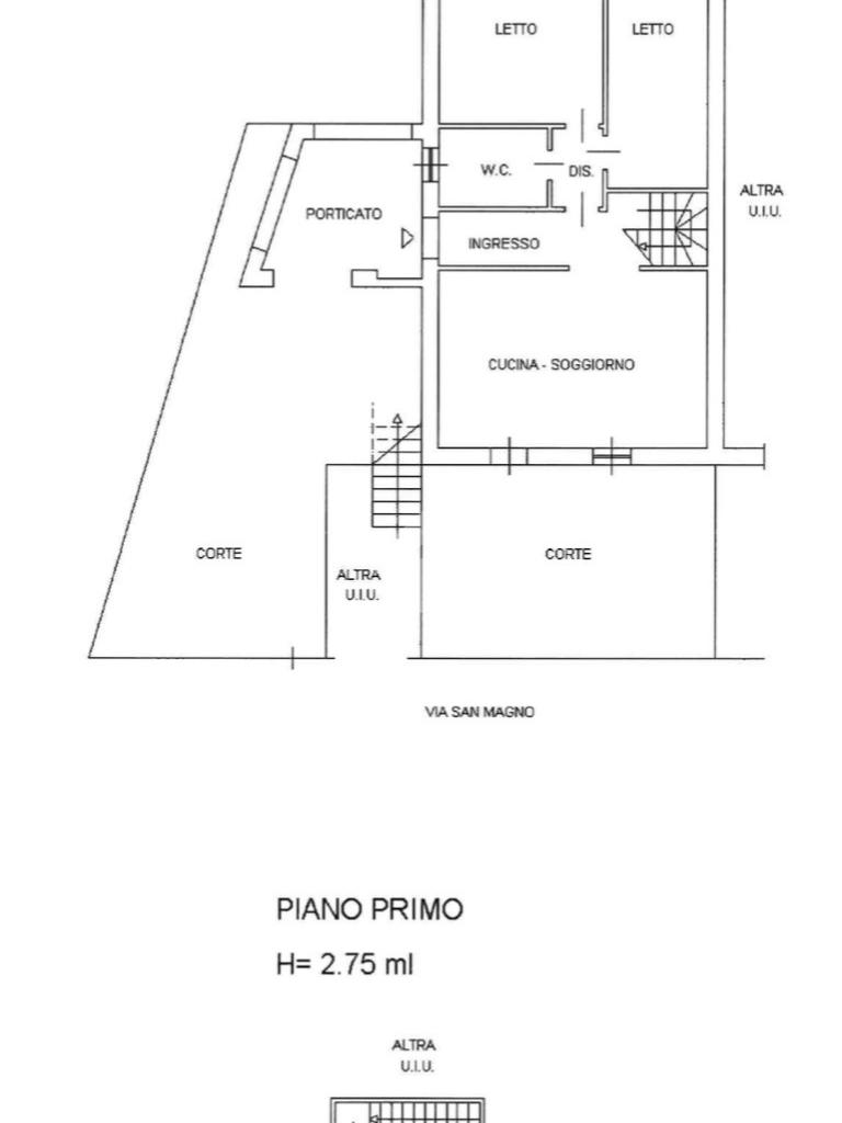 Al primo piano troviamo la terza camera da letto e bagno finestrato con doccia.