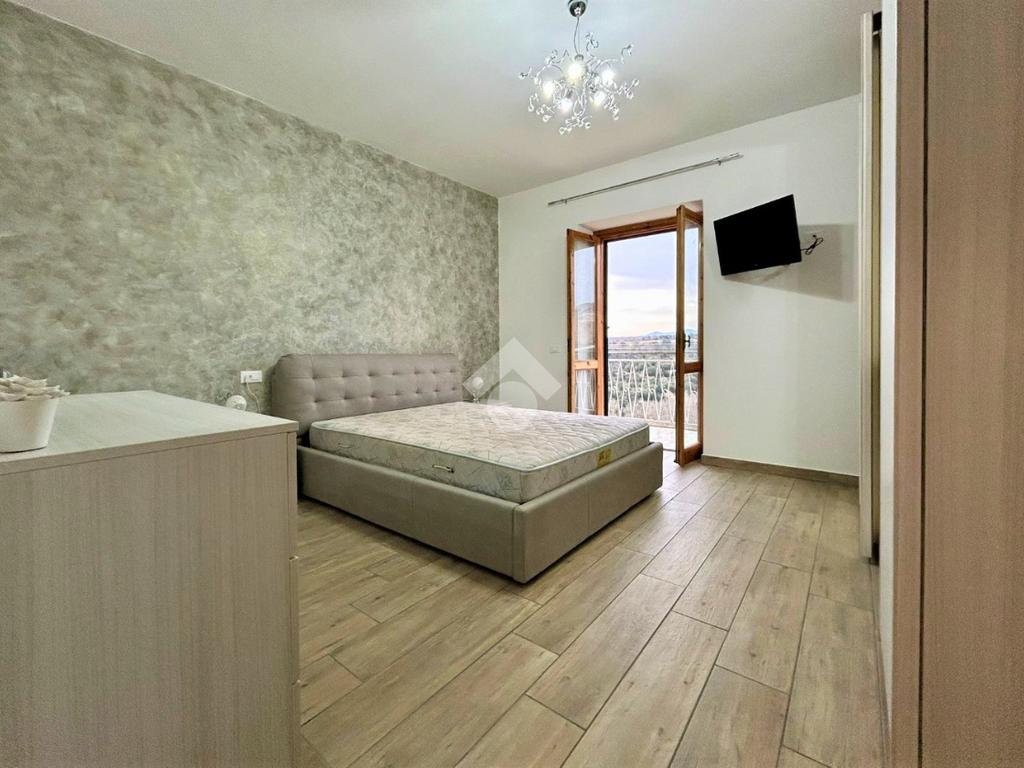 La villetta , di 95 mq utili , è composta al piano terra da portico, ingresso, ampio salone con angolo cottura e camino, camera , cameretta , bagno finestrato con doccia ed un balcone con affaccio panoramico .