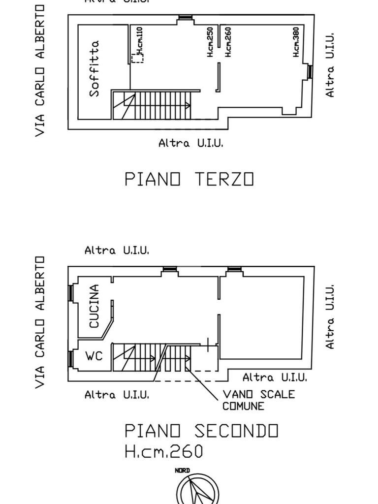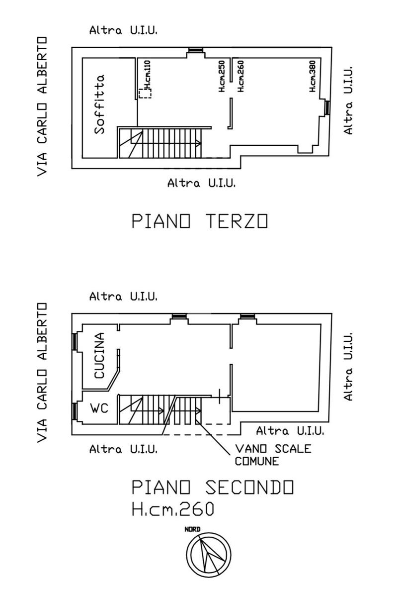 In palazzina centralissima , l’appartamento ai piani secondo e terzo , e’ composto da ingresso, soggiorno , cucinotto , tre camere da letto , disimpegno e bagno finestrato con doccia.